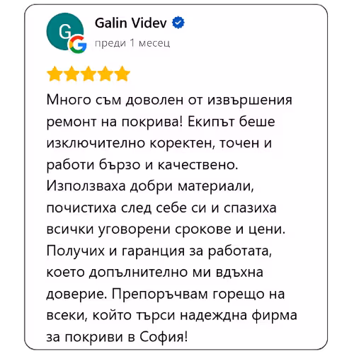 Имаме над 340 успешно завършени покрива и САМО ОТЛИЧНИ ОТЗИВИ.